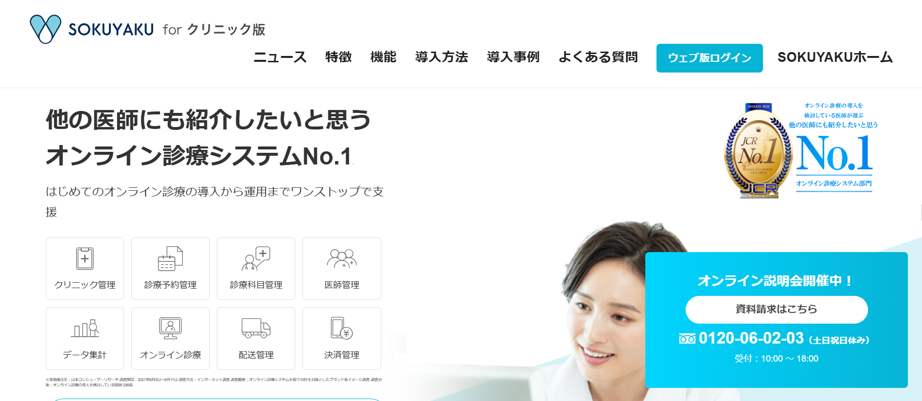 SOKUYAKUは、診療予約からオンライン診療、薬の配送までをワンストップで管理できるプラットフォームです。