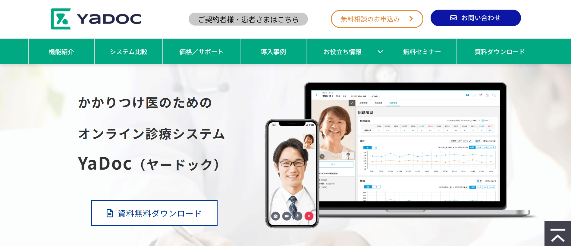 YaDocは、日々のバイタル記録などを通じて、かかりつけ医と患者さまの継続的なコミュニケーションをサポートし、診療の質を高めることを目指すシステムです。特に、慢性疾患の患者さまの長期的なフォローアップに強みを発揮すると考えられます。